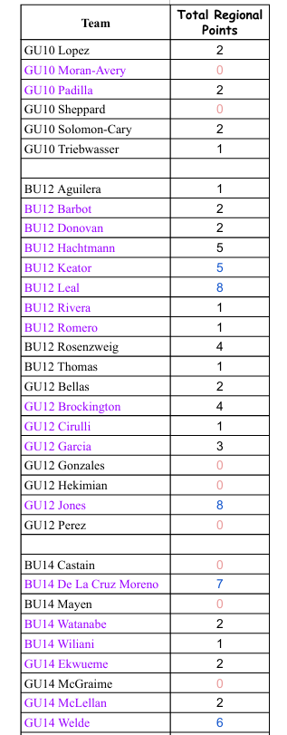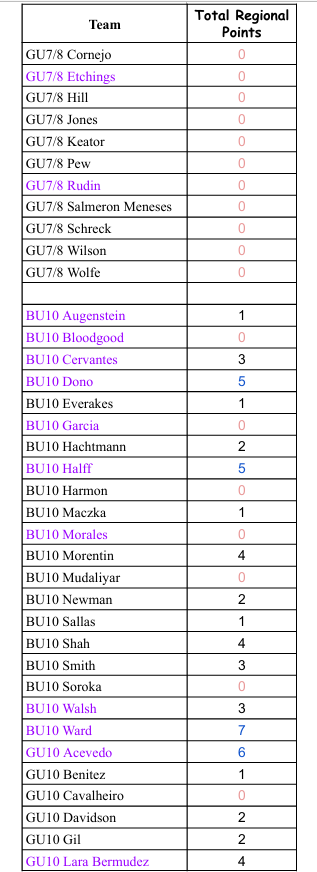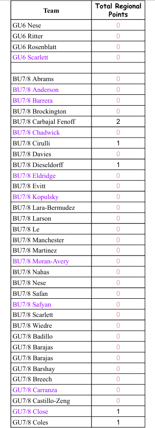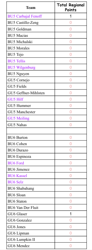Teams earn Regional Points as Follows: