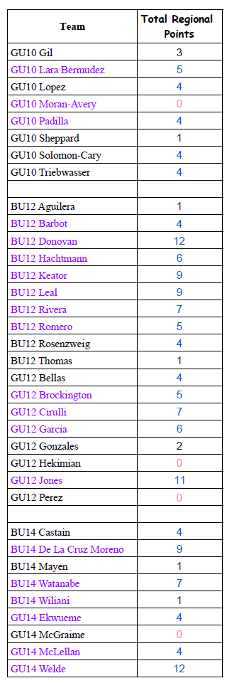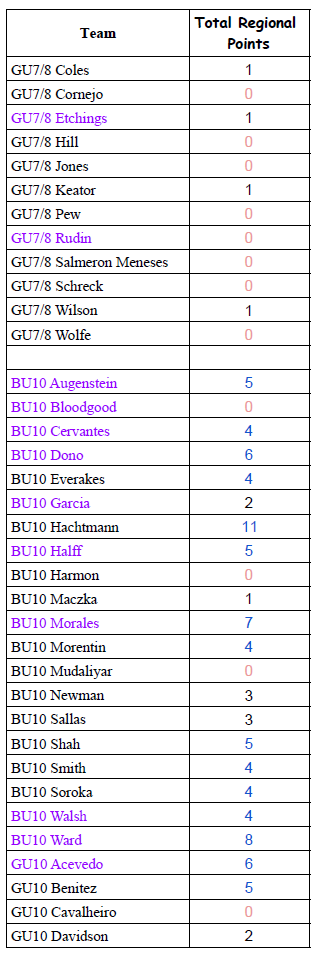 All Teams (7U - 14U) must earn 4 Regional Points.
