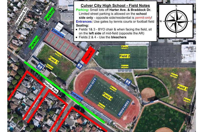 Field MapsCulver City High School4401 Elenda St, Culver City, CA 90230Blanco Park5801 Sawtelle Blvd, Culver City, CA 90230Fox Hills ParkGreen Valley Cir &, Buckingham Pkwy, Culver City, CA 90230